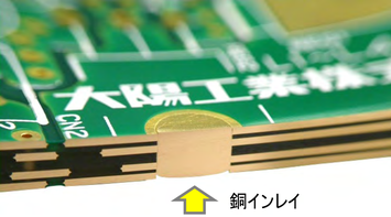 大陽工業では発熱部品の直下に銅を圧入することによって基板裏側への効果的な放熱経路とする「銅インレイ基板」のご提案をしています。